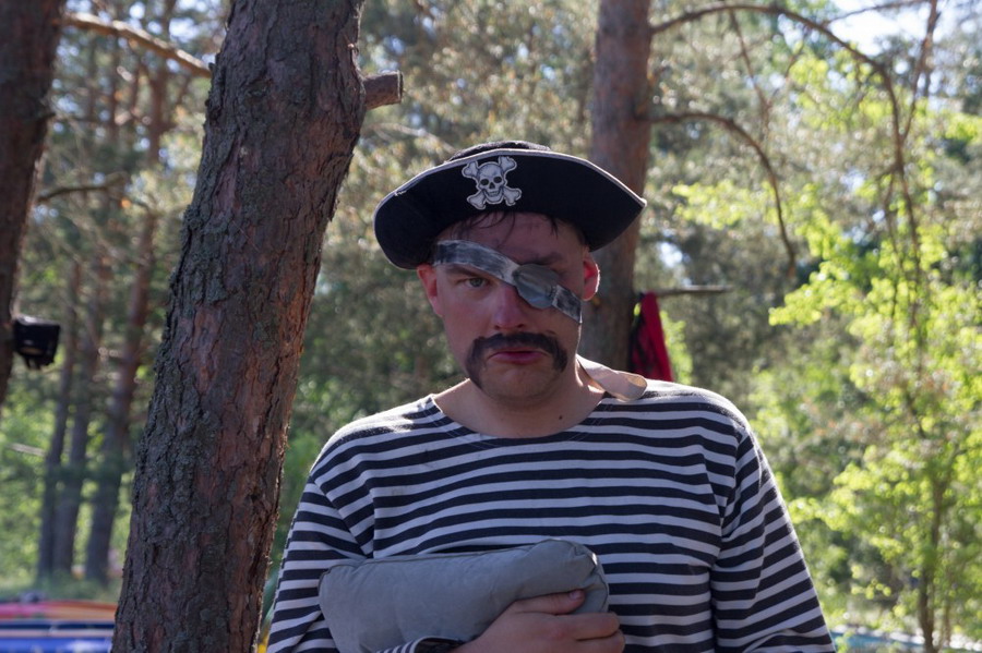 Утро было светлым и вообще из-за отсутствия кровососущих тварей вполне приятным. Алкоголически настроенные элементы подтягивались к столу опохмелиться, трезвомыслящие подтягивались также подкрепиться , послушать прикольные утренние шизоидные шуточки. Токарю взамен его порванной шляпы Сантехник выдал пиратскую . Токарь нацепил ее, но чего то не хватало. В итоге ему скотчем примотали к глазу крышечку от пластиковой бутылки (просто фотоаппарата Зенит не было).