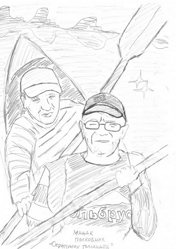 Моим напарником по судну был назначен Полковник Малышев – Духовный Наставник Секты. Выбрав себе понравившуюся лодку (благо выбор пока был), мы разместили в ней свои пожитки и стали ждать отправления. Полковник в водном походе впервые, я тоже не асс гребли, поэтому шли мы медленно, но уверенно, с каждым часом набираясь навыков управления судном. Судном была двухместная востроносая пластиковая байдарка Виста. Не очень грузоподъемная и устойчивая, зато достаточно ходкая. Шли, ведя духовные беседы, благо поговорить было о чем – все таки два конструктора собрались. Я понял, почему Полковника зовут Духовным Наставником Секты. Ранее он был Начальником Отдела Кадров Секты. Но кадрами занимался вяло. Его заменил более агрессивный и деятельный Глаз. Официально же Полковника Малышева повысили. Тихий, задушевный голос действительно действовал успокаивающе и благотворно влиял на психику. При каждом движении веслом лодка поскрипывала , поэтому мы назвали свое судно «Скрипучий Голландец». Проходя мимо рыбаков, Полковник всем желал «Доброго улова». Проходя мимо очередного дядьки с удочкой, когда Полковник пожелал ему «наловить побольше рыбки», рыболов чуть не кинул в нас ведром.