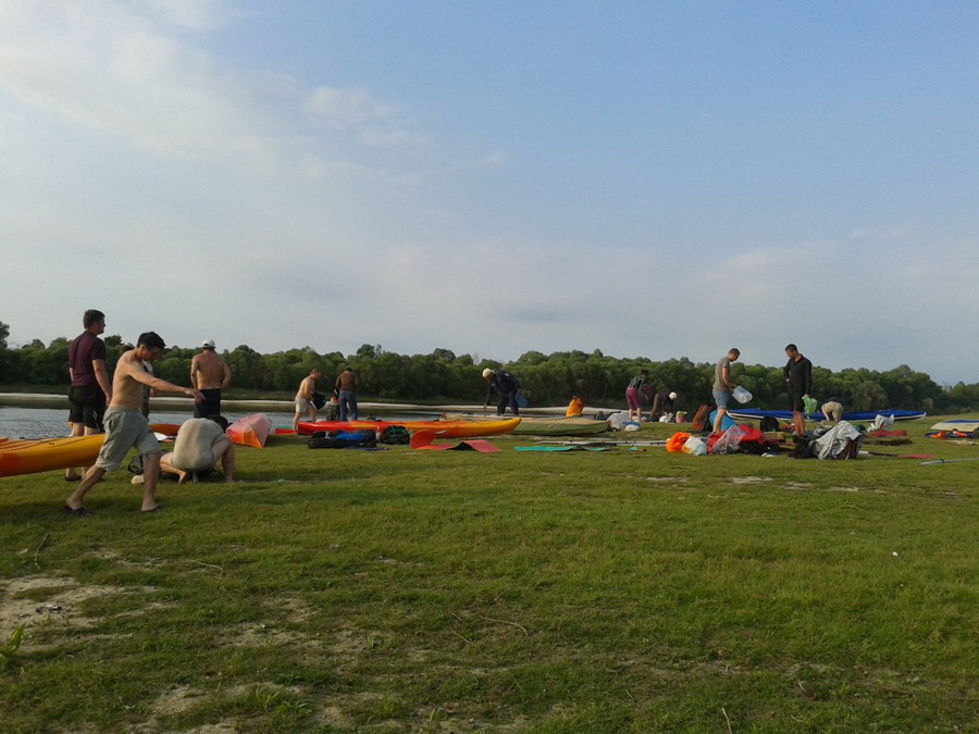 28 из них до сиесты. Мы с Сергеем приплыли под сумерки. Поляна оказалась знатная. На берегу стоял стол со скамьями. Народ разбрелся ставить палатки и собирать дрова. Появились котелки и ведра.