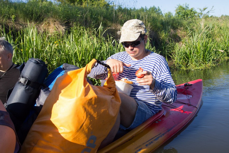 Немало встречалось рыбаков, да и сразу видно - рыба в реке есть. Тут и там видны были всплески воду от крупных особей. Путь до стоянки оказался не таким близким. Глаз заложил в первый день 48 километров.