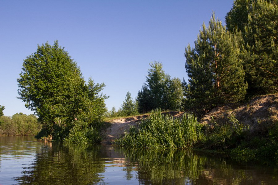 Отдохнувши оправились в путь. Берега реки Случь очень красивы, такие заросшие травой и деревьями свисающими в речку, что нередко кроной своей полоскают степенно текущую воду.