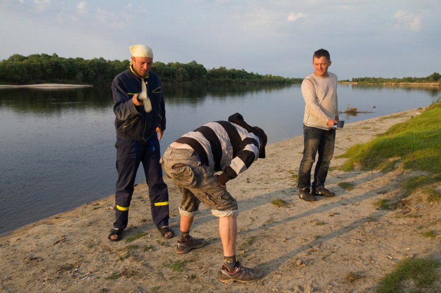 Мы просто чудовищно отстали от наших товарищей. В попытке догнать их мы усиленно гребли, грели и еще раз гребли. Час за часом, похолодало, оделись. Но вода была очень теплой. Я думал мы своих догоним к часам 11…12 вечера, но как бы ни так. Уже стемнело, а мытак и никого не было видно. У меня был один фонарик, которым я освещал нашей байде путь среди буреломов реки Случь. Как обычно, бурелом ночью, кажется непроходимым. Пилили мы очень долго, шли на одном «этаноле». Пили водку без закуски. Шли и ждали рассвет, на рассвете уже стало все равно сколько нам еще идти, понимая, что сами довыкаблучивались со своими дополнительными сиестами и что 23-ем человекам наши прихоти до одного места. Оставалось только ехать.