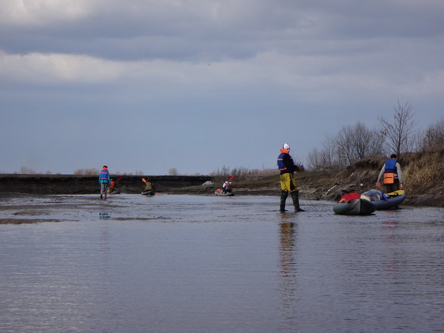 Удивительным образом в следующем водном сегменте нашего похода воды не было. Она вернее была, но в количестве, исключающем передвижение внутри байдарки. Шли бечевой. При всей сомнительности удовольствия движение это было весьма занимательно.