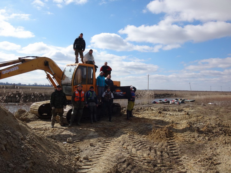 Вскоре самочувствие резко улучшилось, и уже к выходу коллектив пребывал в приподнятом расположении духа. В качестве фотосессии решили, что фоном как нельзя лучше подойдет пригнанный сюда для мелиоративных работ гидравлический экскаватор (среди просторов мелиоративной системы ничего другого не было).