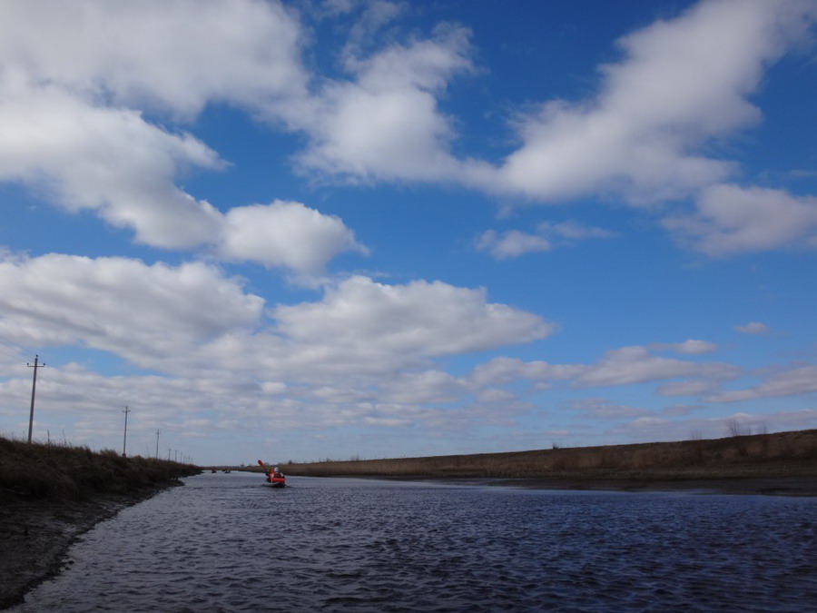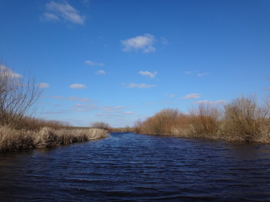 Идти по Нижней Чакве оказалось весьма занятно. Извилистое и глубоко прорезанное в сухих берегах русло да еще и поросшее древесной растительностью было живописно. К тому же по нему было интересно и маневрировать. Чем дальше, тем постепенно Нижняя Чаква расширялась и спрямлялась. Встречно косой ветер рябил воду.