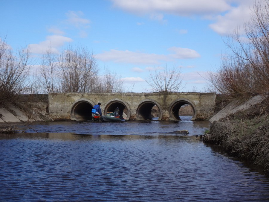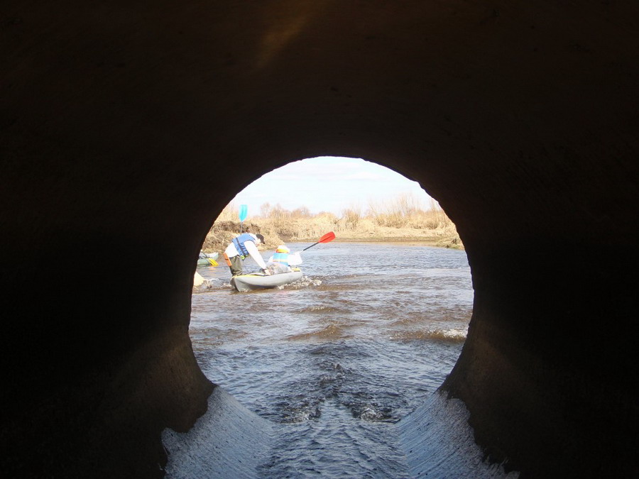 Пришлось возвращаться до вчерашнего шлюза и проезжать уже третий раз по трубам. Довольно скоро в проводку мы миновали еще одни трубы.