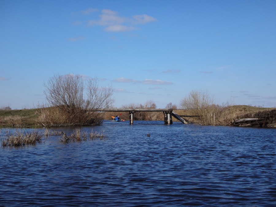 Не частые, видать, мы здесь визитеры. По мосту ехал дришпель. Дришпель остановился. На мосту со, шлюзом ожидая нас с любопытством, но солидно, стояла пятерка крестьян. Байдарочники иногда по этому маршруту ходят. Местные утверждали, что подобный поход видят впервые.