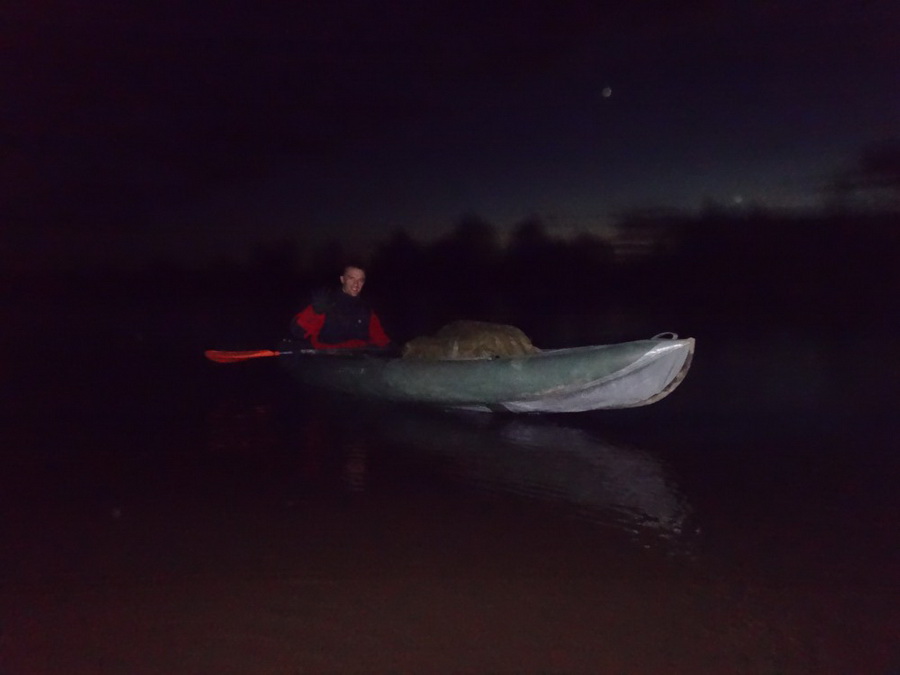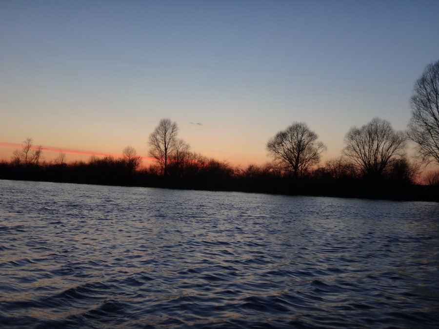 Лодки шли навстречу Припяти сначала в розовом закате едва различимыми на фоне темной воды силуэтами. Позднее это были отдельный светлячки фонариков, как бы ощупывающие берег своими лучами. Стих в темноте и ветер.