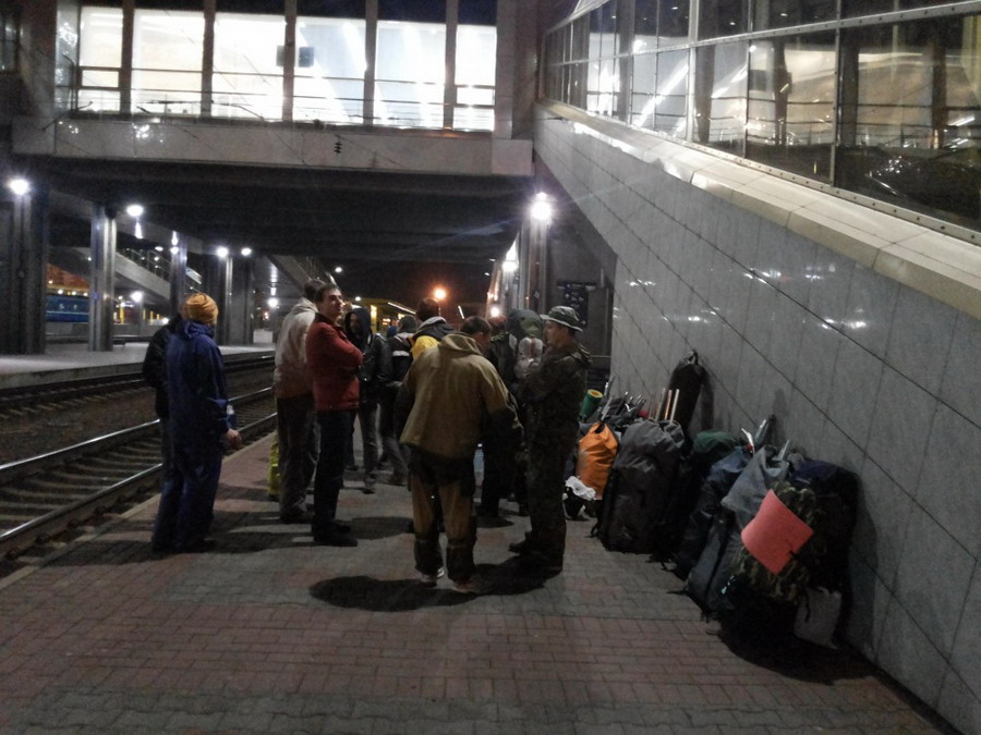 в 22:00 в помещениях камеры хранения ж/д вокзала Минска встретились люди, которые своим видом и багажом разительно отличалась от обычных граждан. Эта была не полная группа турклуба Магадан, отправляющаяся в водный поход под номером 65 по рекам Полесья и провожающие её друзья.