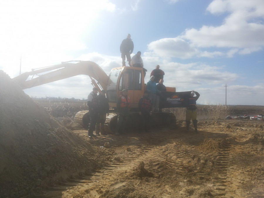 Быстро собравшись и подкачав Хатанги, мы сфотографировались у стаявшего на берегу экскаватора и отправились в путь. Экипаж Славы и Саши рассадили, чтобы один из них пошёл на байдарке Пузо и Мюцага.