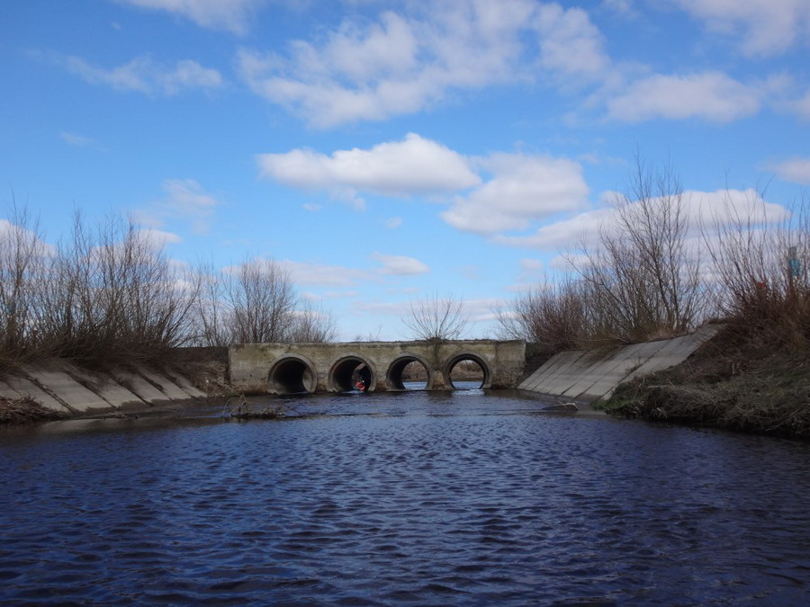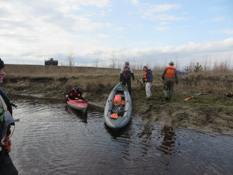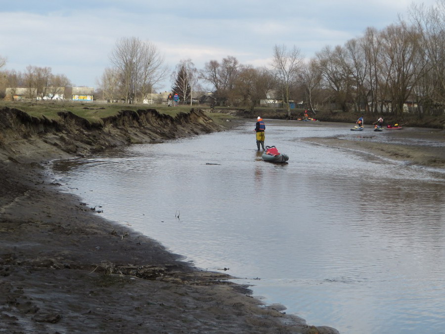 На глазах местных зевак, для которых туристы в спасжилетах на байдарках смотрелись так же чудно, как для нас их самодельный дришпель, мы перетянули наши байды с вещами через насыпь. После которой начались сплошные мели, которые были по душе только нашему руководителю. Ему не хватало трудностей, и он не смог сдержать своё радостное: «Наконец-то, начинается Глазовский поход!». Так нас встретило начало Хотомельской Канавы.