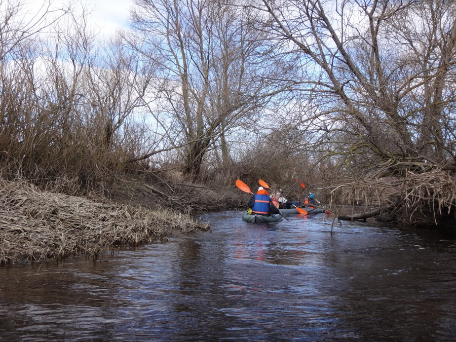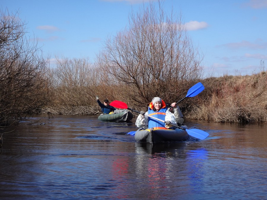 В целом группа шла ровно до дамбы, где Миша-СБХ, который в конец расслабился и уже у самого берега повторил подвиг Глаза. А именно вылезая из байдарки, Миша потерял равновесие и хорошенько занырнул в обдающую мартовской свежестью воду. А расслабился Миша из-за своей напарницы Витолины, которая с проворством бывалой и опытной туристки гребла вёслами так, что по словам того же СБХ, ему приходилось только подруливать, а иногда и притормаживать судно, это невероятно, но в дальнейшем Миша на треке даже умудрялся иногда немного навзничь вздремнуть!