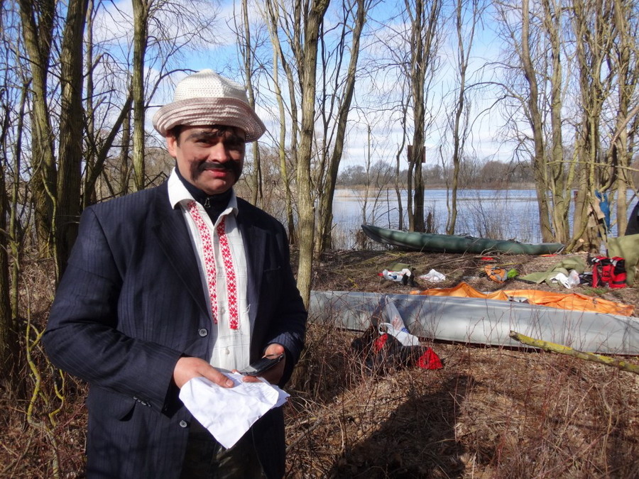 Поэтому поводу водную часть сегодняшнего дня решили разбавили программой Художественно Увеселительного Единого Кружка (ХУЕК). Сначала в соответствующем одеянии выступил Миша, который на белорусском языке поведал нам историю Столинского района. Его почин поддержал Глаз, который напомнил нам, что сегодня, 14 марта, празднуется День работников геодезии и картографии. И в режиме интерактива разобрал преимущества и недостатки современных GPS-навигаторов и даже объяснил чем отличаются понятия азимут и пеленг и в чем разница между такими направлениями как геодезия и топография