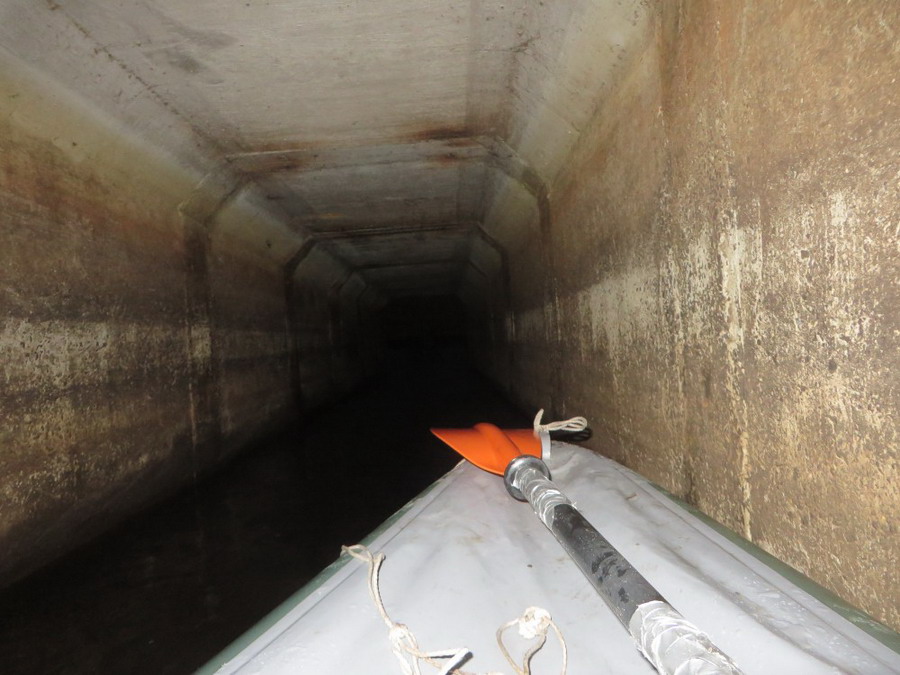 Смеркалось… Вскоре мы стали преодолевать очередное инженерное сооружение, которое было в виде двух десятиметровых бетонированных тоннелей. Как я сейчас разобрался, это и был переход Хотомельской Канавы в следующий сегмент маршрута Нижнюю Чакву, где вскоре была запланирована ночёвка.