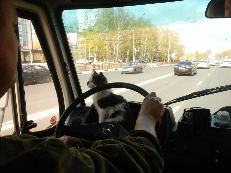 Среди прочих экипажей немало было детей. Брали и собак. Но кот такой был один!
