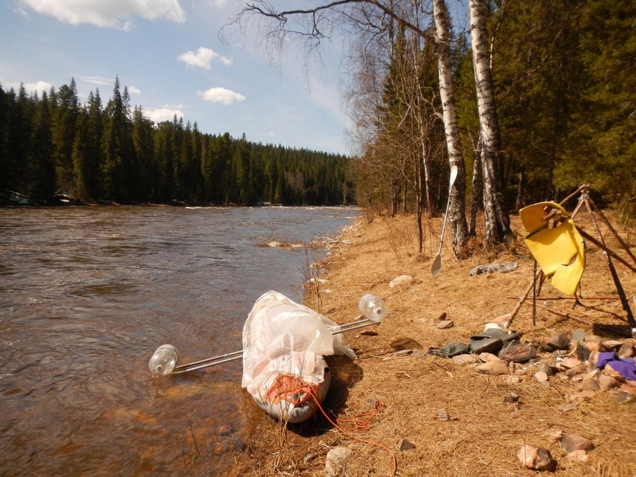 Еще год назад отчет был поручен Александру Скляру. За дело он взялся бодро и даже конспектировал события. В дороге и когда были немногочисленные часы досуга что-то писал, расширял пометки описанием свежих впечатлений. Как вернулись из похода какое-то время Глаз даже пробовал напоминать про отчет. Прошел год. С тех пор не отчета не Скляра. Завершился очередной сплав по Уралу. Приходится, чтобы взяться за следующий отчет, поставить с запозданием точку над этим и по фотографиям вспоминать, что уже давно забыто...Погода нас баловала. Днем было тепло, но еще не жарко. Небо безоблачно. В затененных местах на берегах лежали лоскуты последнего снега