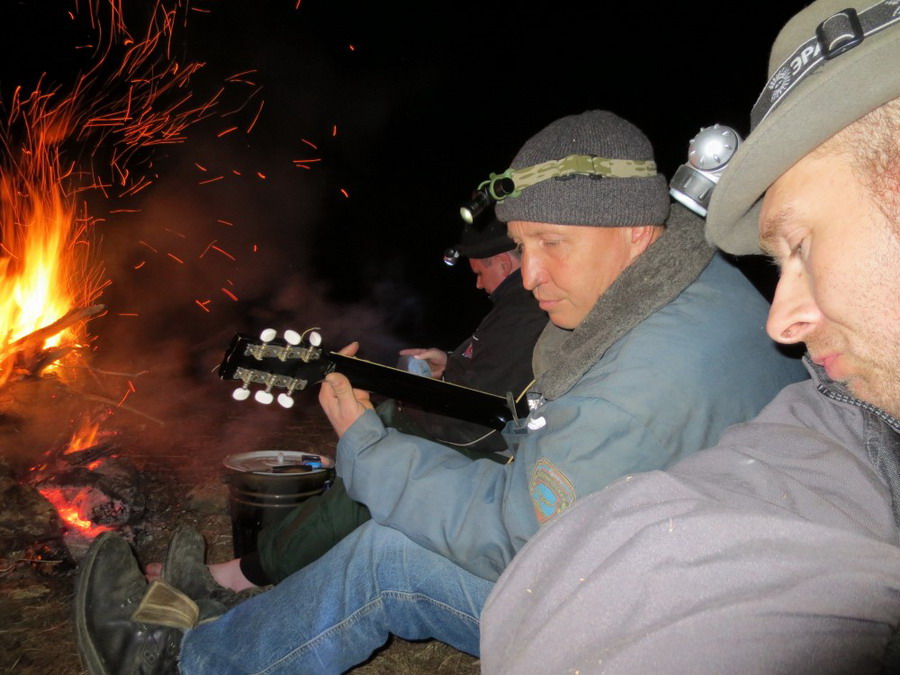 Стали справа. Вечер первый и единственный сопровождался сегодня довольно долго гитарными песнями. Летчик-Пенсионер даже брал пухлую тетрадь с аккордами.