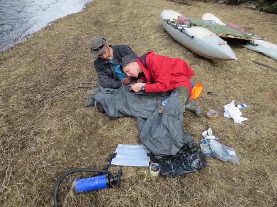 Потом быстро иссякло, сменившись на пасмурную погоду. Как раз в это время отклеился сосок у катамарана двойки. Сосок ремонтировали долго, тщательно и скурпулезно. После очистки с пристрастием после старого клея латку приклеили суперклеем. На поверку оказалось, что изделие сделали очень хорошо. Балон воздух не стравливал.
