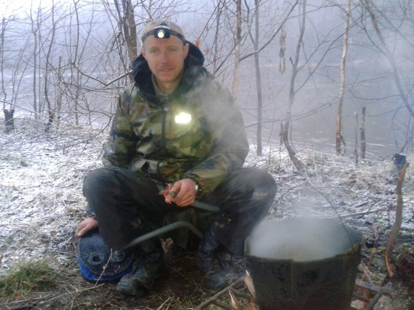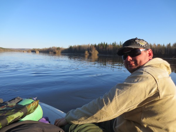 Вишера поначалу была еще и меньше поперек чем в среднем течении Усьва. Накрапывал дождик. Вода в Вишере казалась отчего-то блестящей, жирной и черной. За тот день стапеля мы прошли тридцать километров. Вишера резко стала шире после того как в нее слева влился Вёлс. Рыбак с моторкой ловил рыбу в устье Вёлса. На счет продать хариуса отказался. Лагерем стали немногим ниже Вёлса. Стал приближаться звук моторки. Вышеупомянутый рыбак – молодой человек передумал и собирался уже хариуса продать. «Для реки» просил, может, и слегка дороговато: