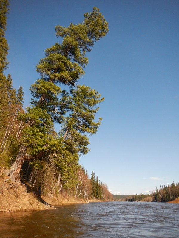 После нескольких дней ненастья погода дальше шептала. На небе ни облачка. Называют это вёдро. Мы ехали под обильными солнечными инсоляциями. Но жарко не было. Вишера географически севернее Усьвы. Вишера сделалась еще шире.
