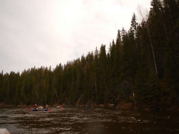 На следующий день ехали через ненастье. Мрачным пасмурным вечером пошел дождь. Вода прибывала на глазах, и на глазах ускорялось течение. Вода в Вишере по-прежнему казалась черной.