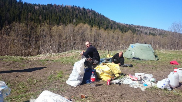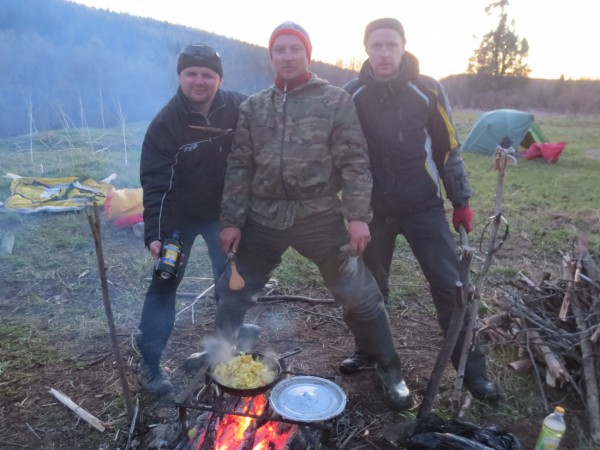 Катамаран собрали быстро. Глаз к тому времени нарезался с охотниками (второй тоже к тому времени проснулся). Охотники были из Перми. Судя по ружьям, снастям и отношению к жизни были они не бедными. К жизни относились по российски просто. А всякий отдых отождествляли с крепкой пьянкой.