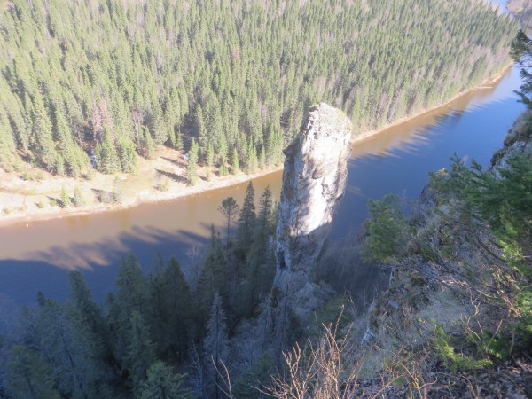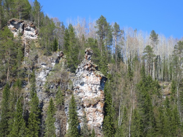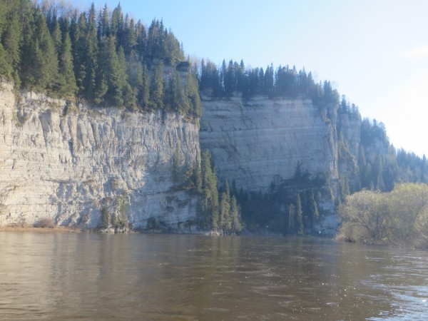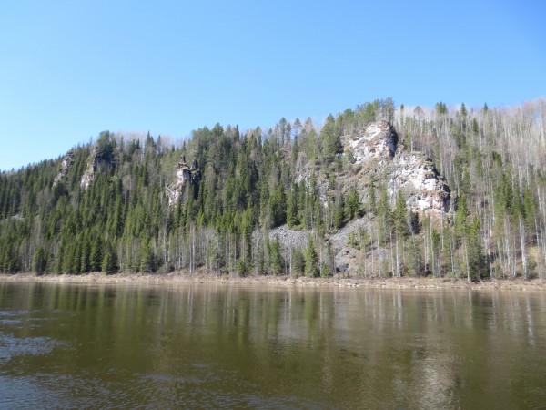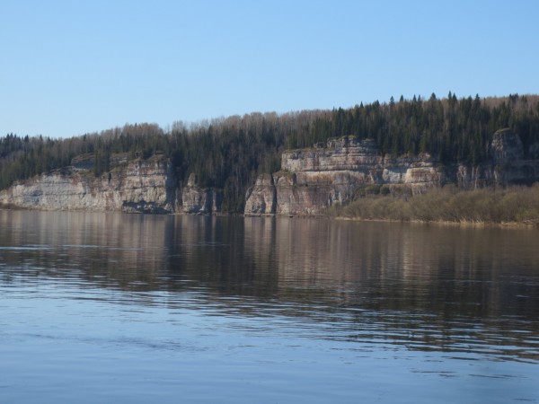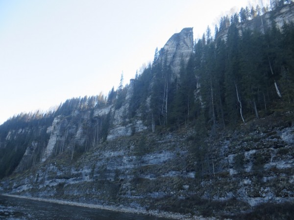 А дальше самая высокая на Вишере 140 метровая скала - камень Ветлан.