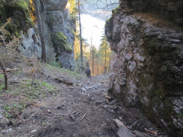 Уцелела только самая нижняя часть. Её почему то сожгли. Где сожги, где сломали. Мы поднимались теперь по тропинке.