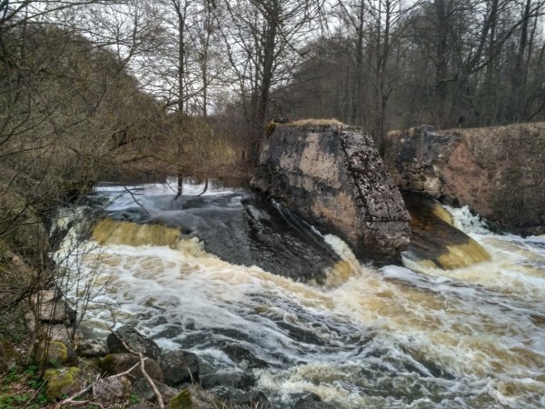 Края не видно, ощущение, как на американской горке: всё сжимается, только зажмуриваться нельзя: в предпоследнюю секунду, будет возможность что-то исправить, скорости не хватило, категорически, мелькнул огромный валун с левого борта, веслом отталкиваемся от него, всё, вот оно… чувство свободного падения, руки вверх, да, всё, мельница пройдена, ура, байдарка наполовину с водой, наполовину с радостью, медленно чалила к берегу. Со стороны остатки старой мельницы напоминают атакующую кобру в стойке.