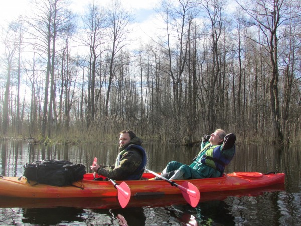Озерная акватория вдохновляла: нету этих полуметровых волн, упомянутых неким туристом, нету дождя, обещанного синоптиками, яркий шар восхода, приятная прохлада, жажда авантюры в крови, подогреваемой адреналином. Именно такое знакомство с Нарочанским Национальным парком, на нашем маршруте, начиналось прямо на точке стапеля. Отдыхать на территории парка можно только в отведенных для этого местах. Кроме того, большая часть Голубых озер является заповедной зоной, и путешествовать по ней можно только по обозначенным экологическим маршрутам. Погода была не солнечная, но и не сильно пасмурная и холодная, достаточно, чтоб не околеть, а этого уже и много.