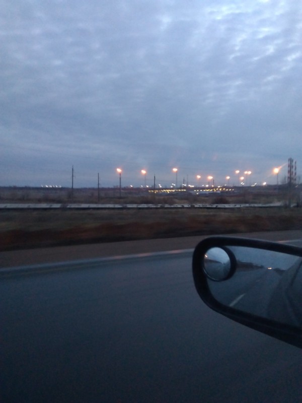 Сперва сходили постоловаться. К одноэтажному невзрачному грязно-белому зданию ГАИ шли потом через унылое поле, не то свалку. Было не холодно и солнце в дымке. Помпезно дул ощутимый ветер. Горящий мусор на свалке придавал этой всей картине хоть и тоску, но и мрачную торжественность.