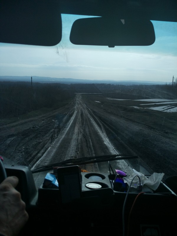7 мая утром мы, наконец таки, выехали! По дороге коллектив перепился. Слава-Электрик и Палыч в особенности. Вели себя они, вопреки репутации, довольно таки деструктивно. Трезвый Глаз очень чувствительный к людской навязчивости. Эта поездка очень хотелось, чтобы быстрее закончилась. В бус тем более, что пришлось утрамбовывать 11 человек.