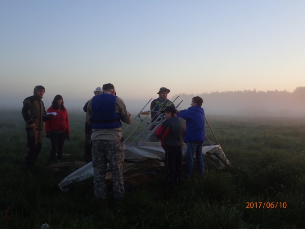 25 участников в один бус, даже большой, не влазили никак. Дорога вперед ближе через Борисов. Глаз договорился с живущим там Колей Армянином (ныне от туризма отошедшим, но готовым помочь), чтобы четверых подбросил на своей лекговушке. Ехали как обычно в ночи. Ближе к Лантыголичам асфальта уже нет, но грейдер вполне был ровным.