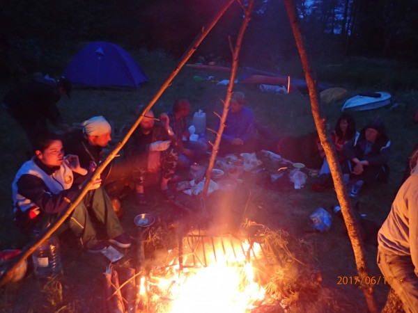 Как пришли на место ночевки разразился снова дождь. Чтобы стать лагерем, пришлось, орудуя веслом, выкашивать могучую траву сныть и крапиву. Все берега вокруг были в принципе такие самые. Из-за дождя ужин Глаз отменил, дескать, дорогое на сегодня удовольствие. Перекусили без горячего. Горячее перенесли на утро.