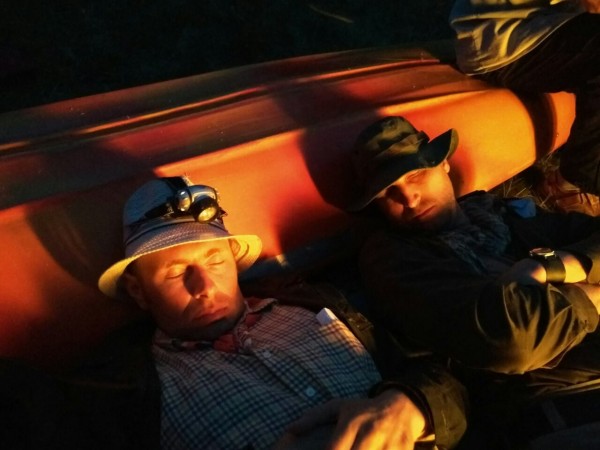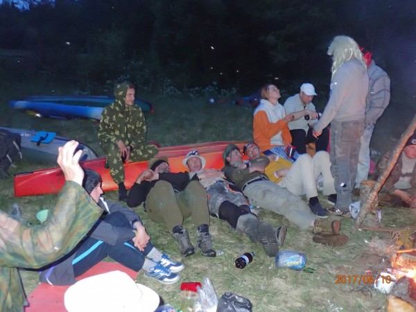Приятно осклабившись, часть группы растянулась не без хмелька, опершись головами на одну из ближайших к кострищу байдарок.