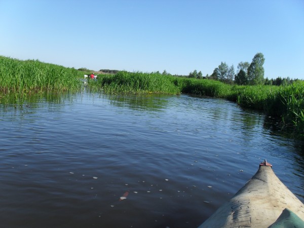 Шли по Улле быстро. Было нас четыре или пять байдарок. Остальные сзади. Пейзажи Уллы отличались от Эссы. Там совсем не было вербья, а здесь её коридоры - были фирменным пейзажем Уллы. Берега в основном высокие и не удобные. Вода прозрачная, видно дно, словно едешь в аквариуме. На несильном течении колыхались плавно длинные по нескольку метров щупальце водных растений.