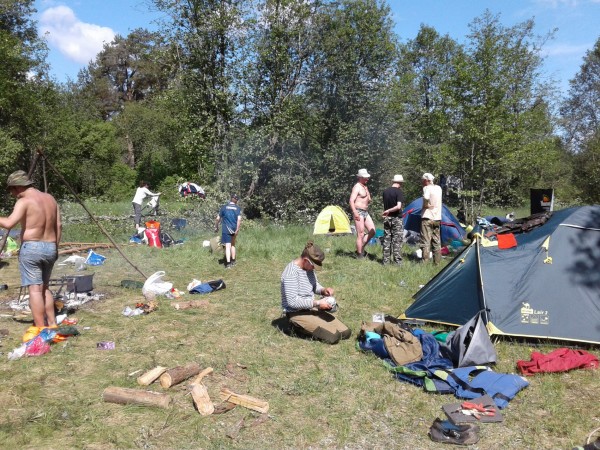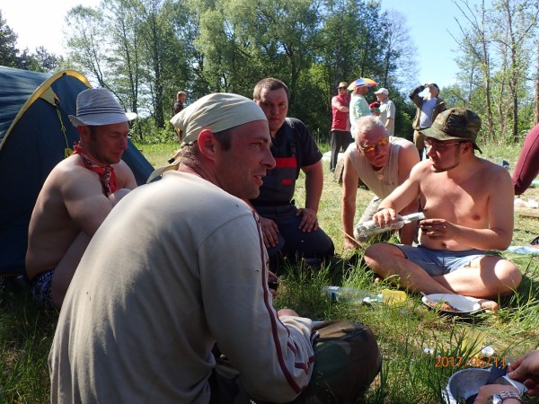 Из-за бессоной ночи и с непривычки к обеду устали. Делали сиесту. Почти весь личный состав задремал. Кто больше, кто меньше. Просыпались, выходили дальше. От этого растянулись еще сильнее. Лагерь 1 был в непосредственной близости от Витебской трассы. Назывался "Ухватчина". Сюда прибыли друзья Миша-Ухват и Игорь Капризка. Все собрались дружно. Дневной переход занял 37 километров.