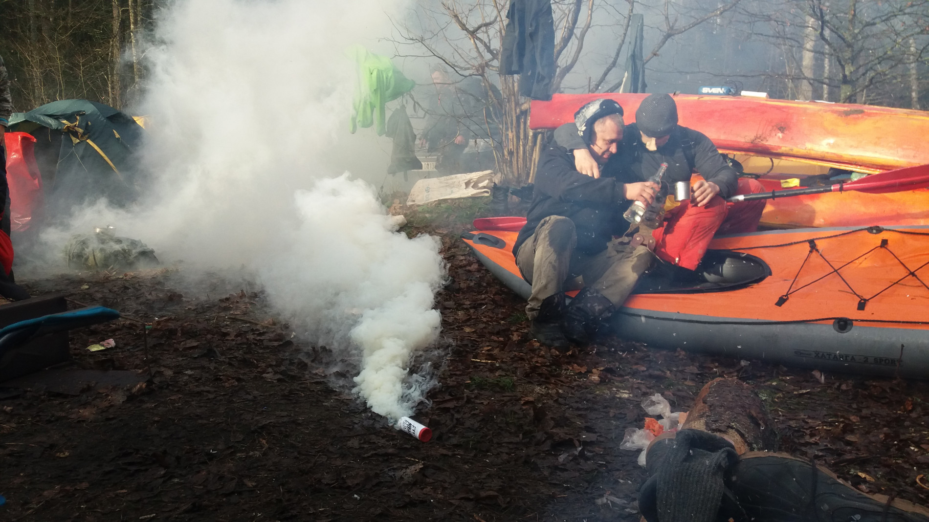 Команда наша составляла для декабря неслыханное количество байдарочников. Не так давно время это воспринималось многими как для байдарок непригодное. В итоге было нас 28 участников-водников. Байдарки собрали всех типов, какие вообще только бывают.