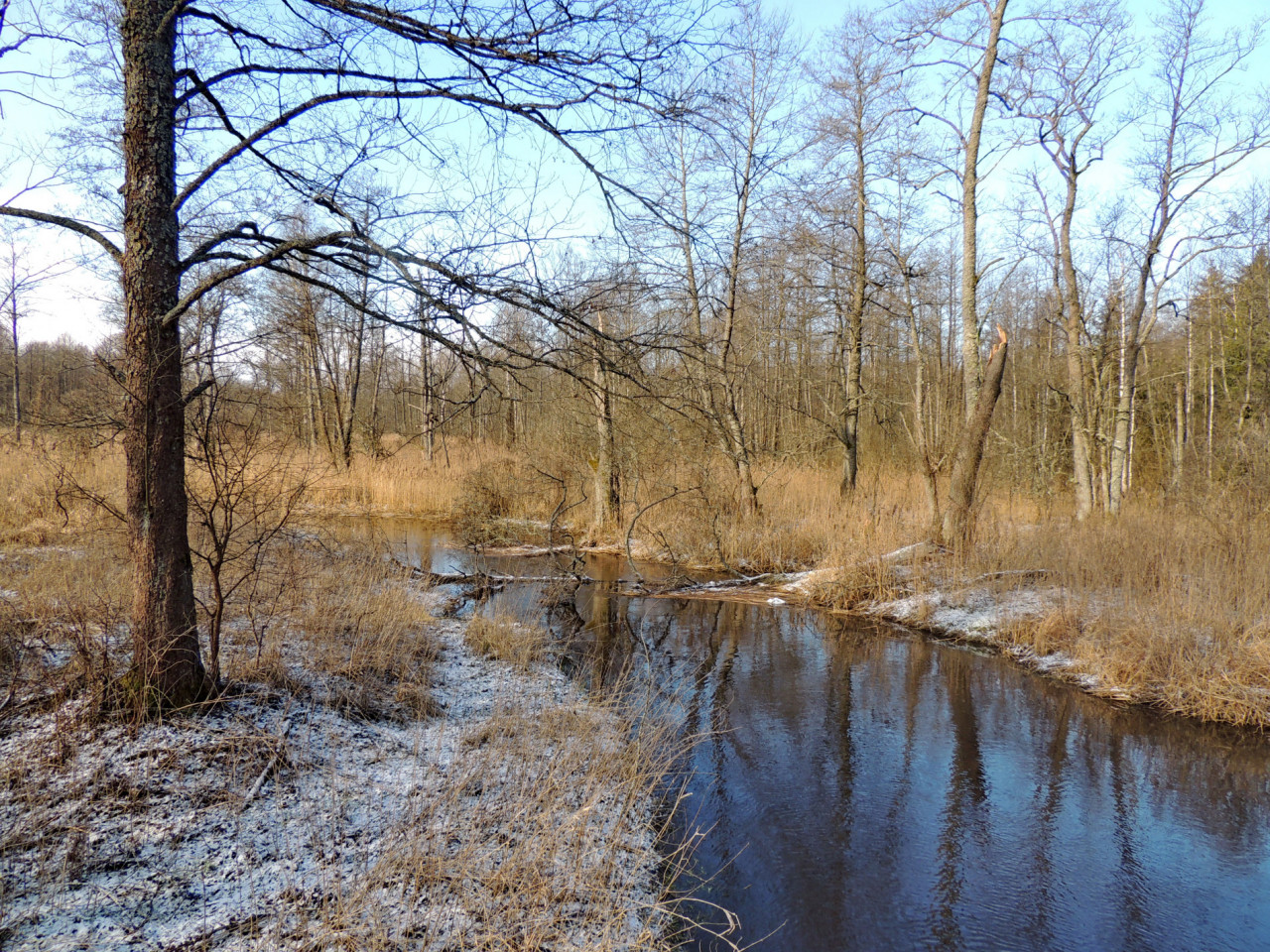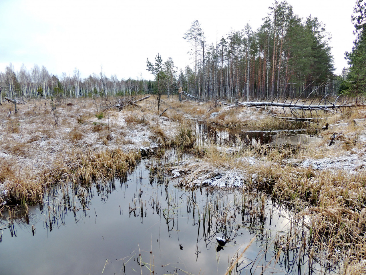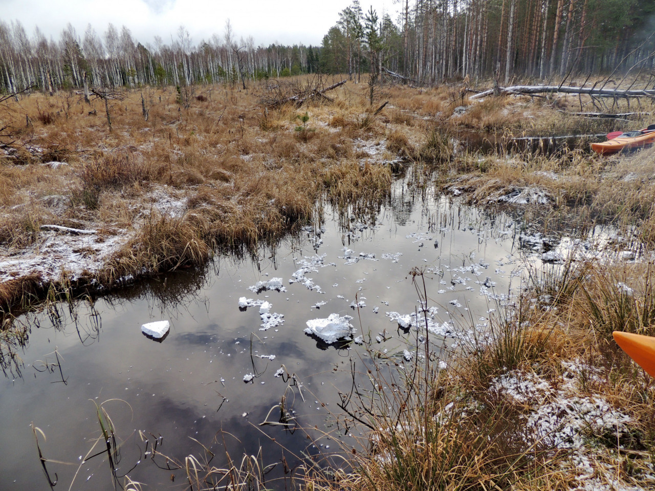 Милиораторы зачем то добрались сюда давно. С тех пор их деятельности каналы основательно деградировали. Как и все в природе склонно восстанавливаться со временем. Только чтобы по нему добраться до реки, пришлось положить не полный час. Сразу очутились мы в объятиях заболоченного леса.