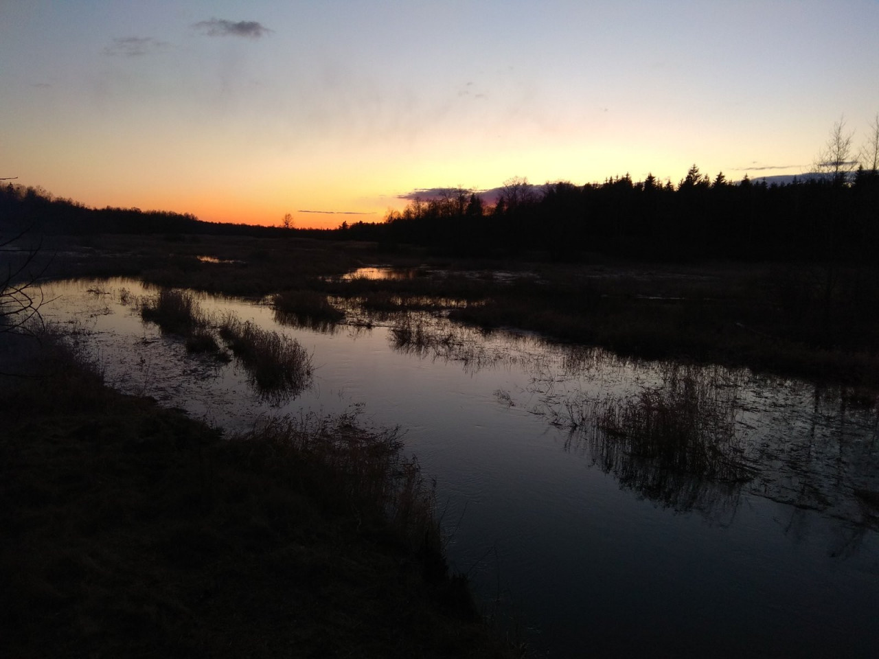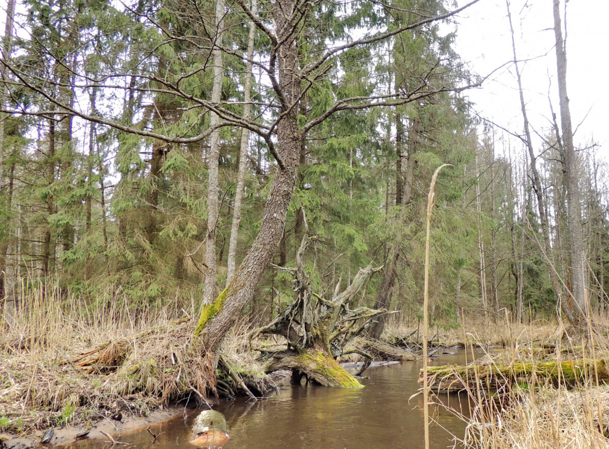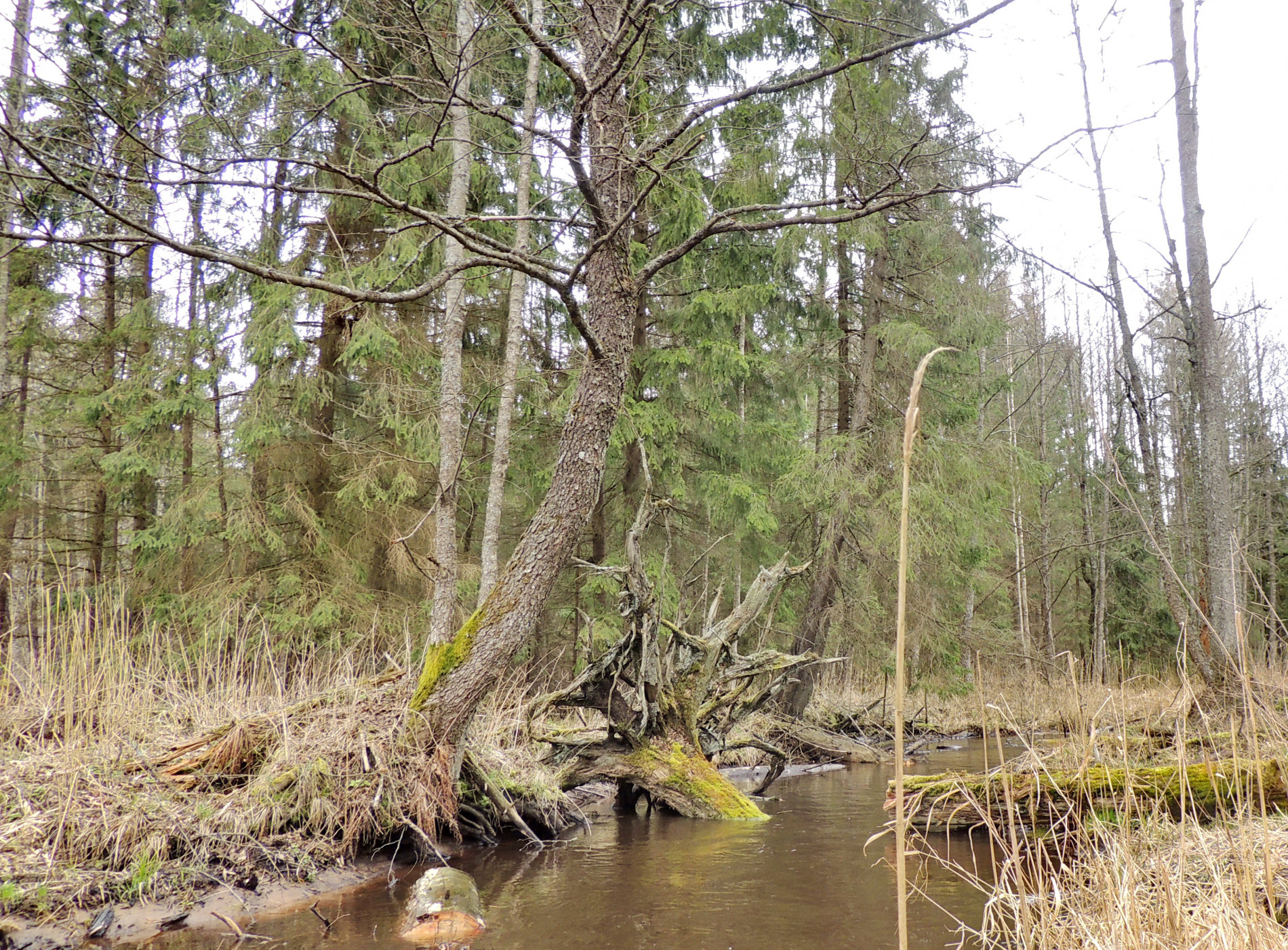 Милиораторы зачем то добрались сюда давно. С тех пор их деятельности каналы основательно деградировали. Как и все в природе склонно восстанавливаться со временем. Только чтобы по нему добраться до реки, пришлось положить не полный час. Сразу очутились мы в объятиях заболоченного леса.