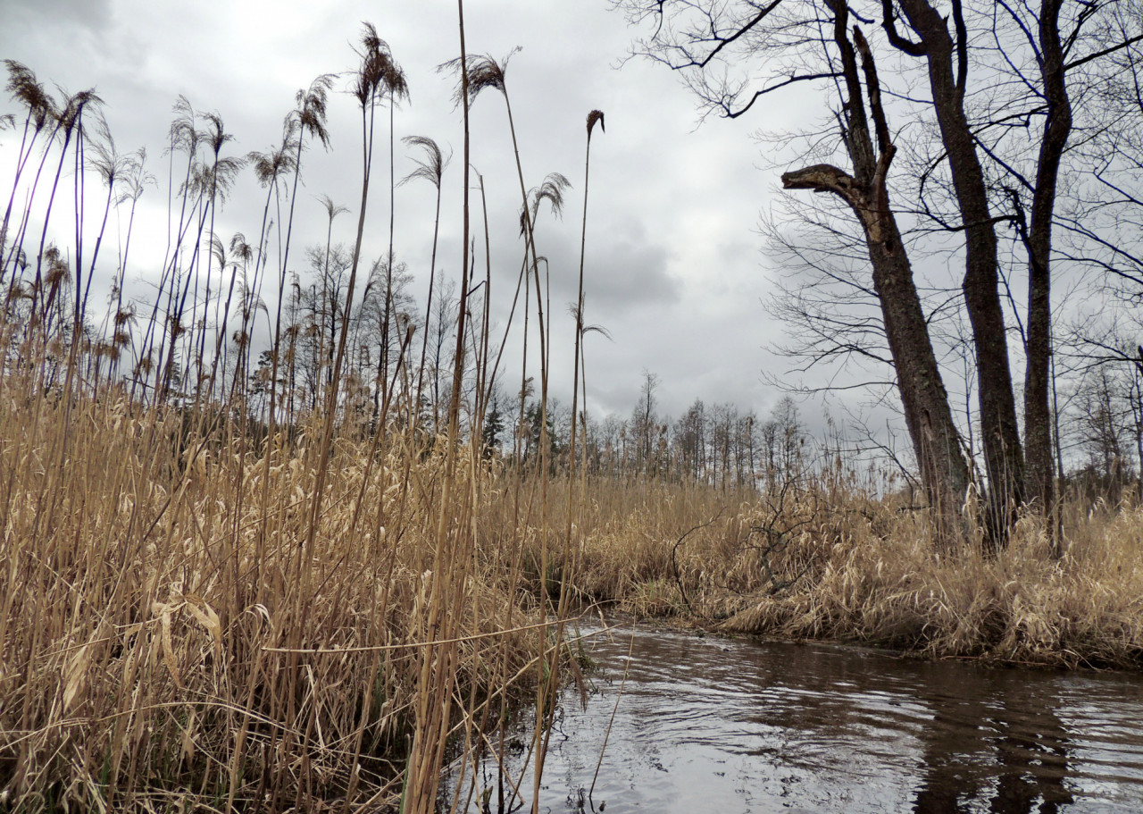 На стыке лесной части и болотно-луговой путь преградила тростниковая пробка. Не то, что пробка. Река взяла и закончилась.