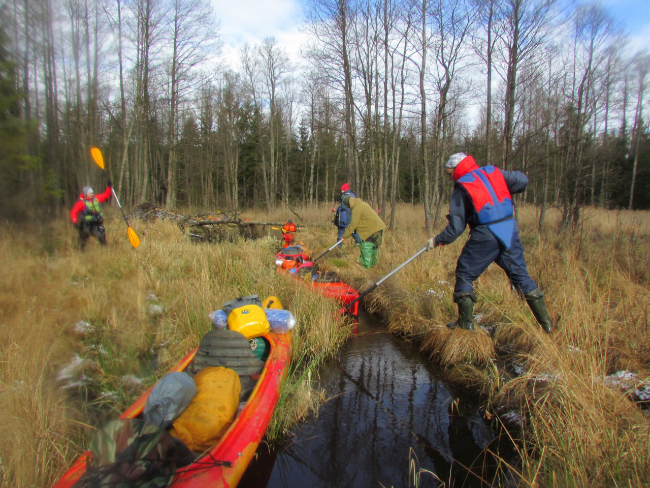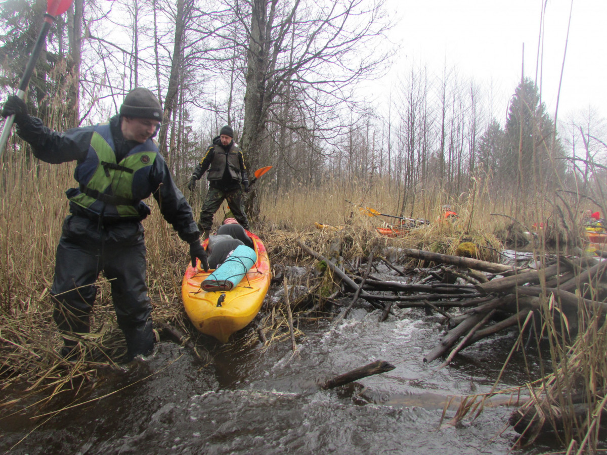Средствам выбора для таких рек служат пластмассовые байдарки. Не самых хороший, а точнее плохой для экспедиционный походов по воде, они самый лучший выбор для выходных походов. В особенности хороши на малые лесные завальные реки, реки межсезонья. Таковой и является Волка. Никаких волков мы, правда, не слышали, тем более их и не видели, но название «Река Волчья» себя оправдало вполне.