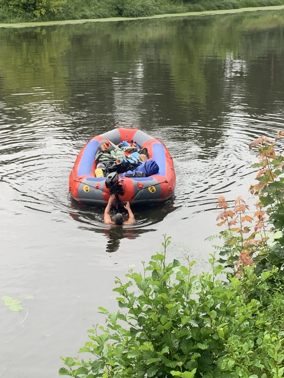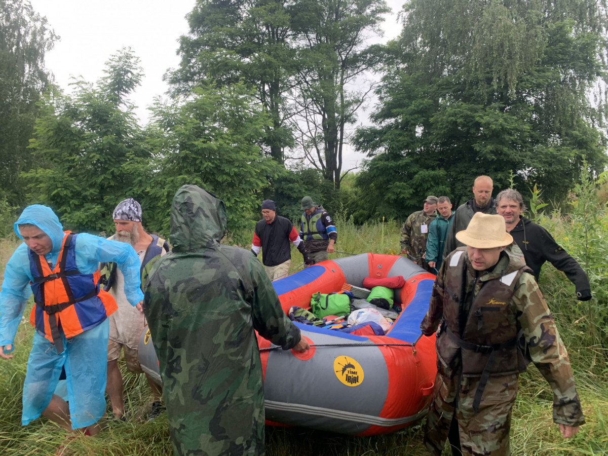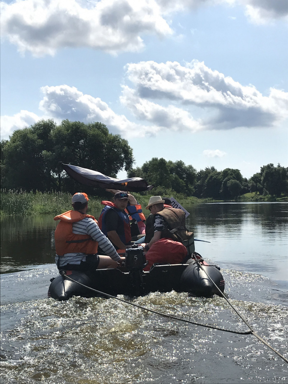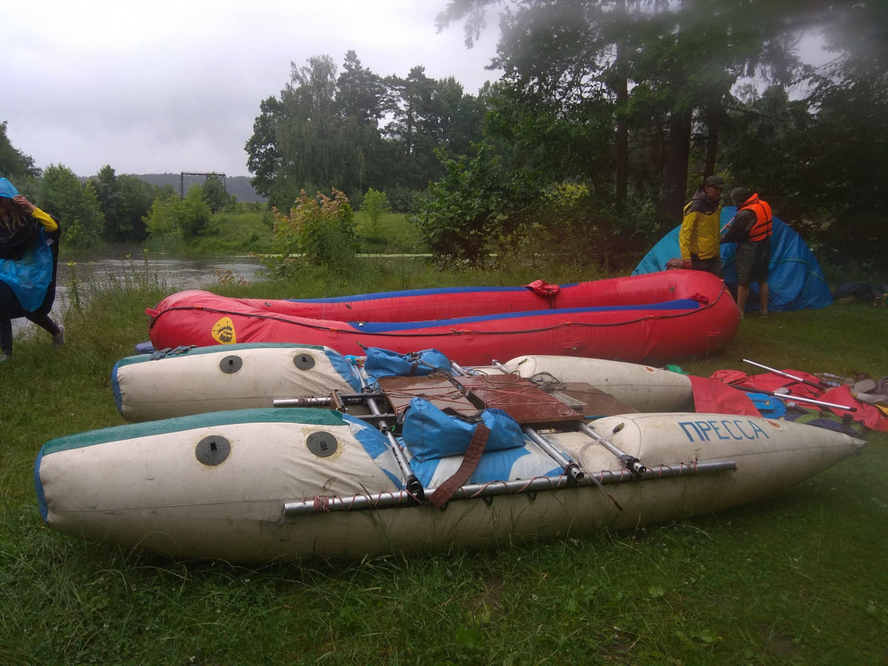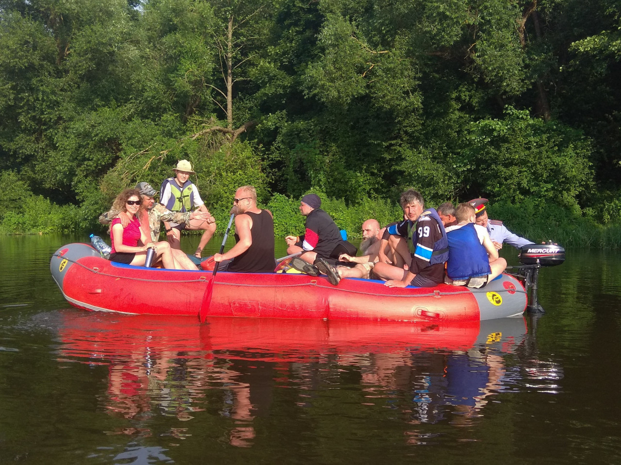 Моторы, на которые не нужны права до 5 лошадиных сил. Взять их в аренду не составило проблем. Но вот на один из огромных рафтов не смогли подыскать транец. Время поджимало. И тут Глаз вспомнил, что нужную лодку буксировщик рафта (на который не нашли транец) можно одолжить у Максима Летчика-Пенсионера. Максим не стал упорствовать, сговорились. За лодкой ехать пришлось в Оршу.