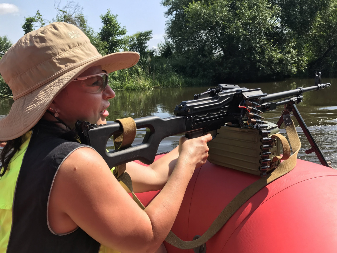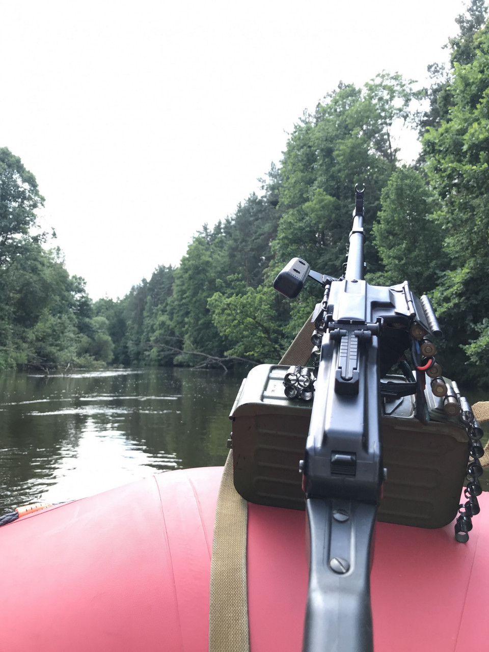 На один из рафтов поставили пулемет ПКМ. Бутафорный, разумеется, страйкбольный вариант. Но он визуально весьма похож на настоящий!