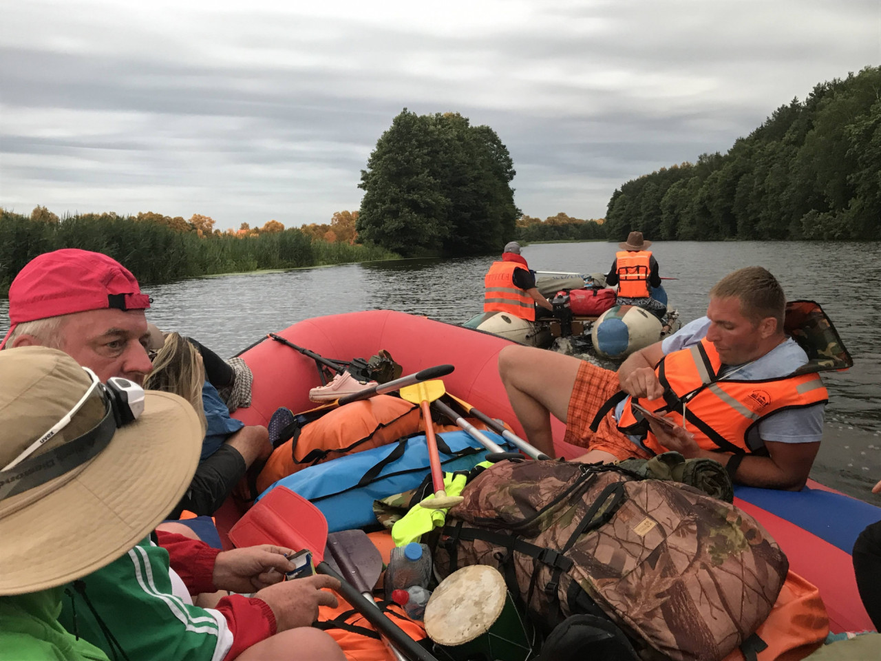 Следующий аналогичный сплав «Осень Патриархов» Стырь-Припять 104 км. Буксировщик большого рафта местная легкая короткая казанка 10л.с. После разработки маршрута выяснилось, что от границы с Украиной в Беларуси две разных Стыри – Левая Стырь и Правая. Наша Правая. Но если впечатлит, когда-нибудь и по левой мы обязательно пройдем.