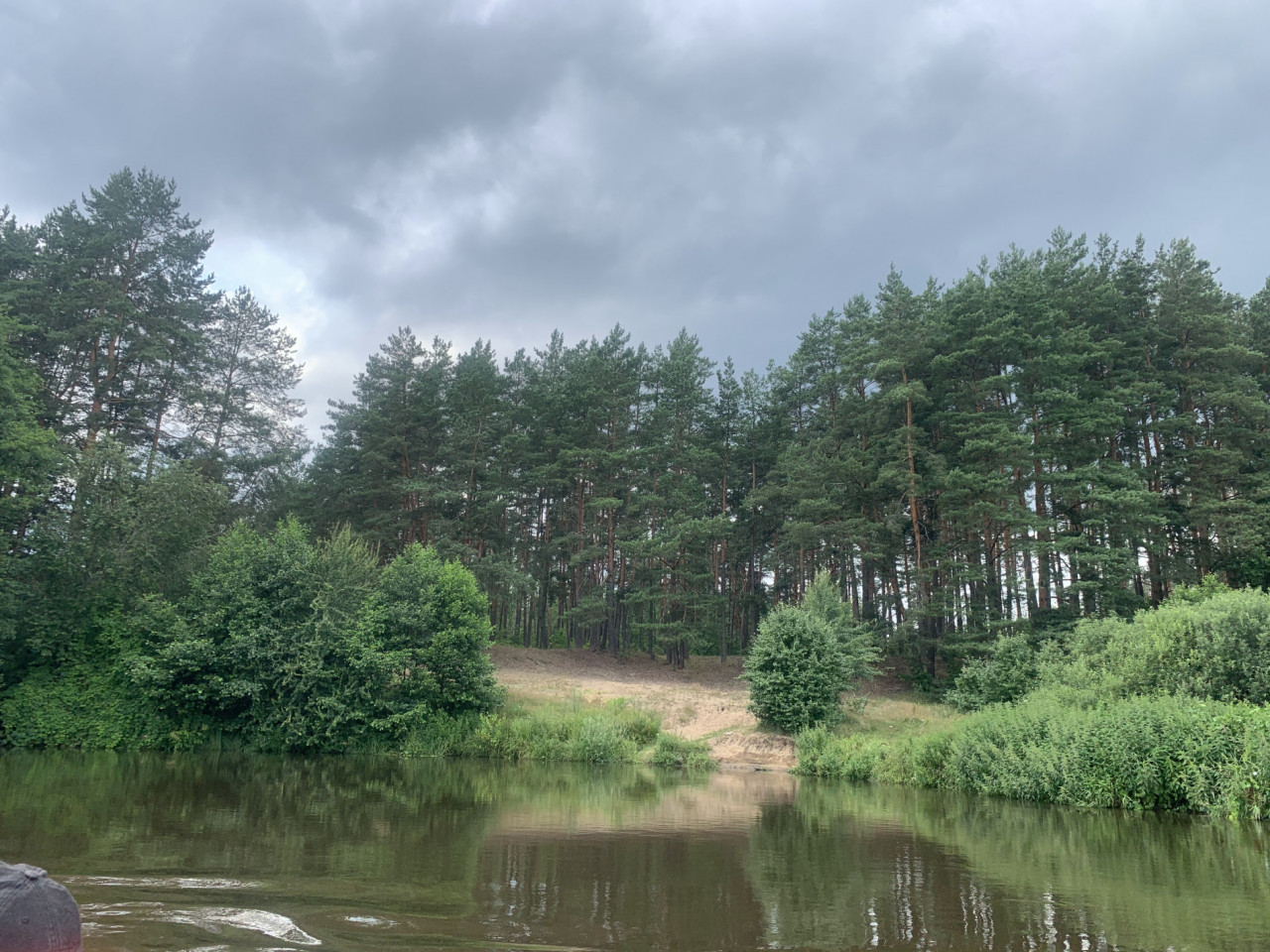 День был солнечный и привольный. На воде ощущалось комфортно и не жарко. Свислочь в основном течет в лесу. Она была все время прекрасна. Вода на солнце казалась с матовым оттенком, не то коричневым, не то зеленым. Людского присутствия на реке не много. Лодок никаких и в помине не было. Только лишь встретили детей.