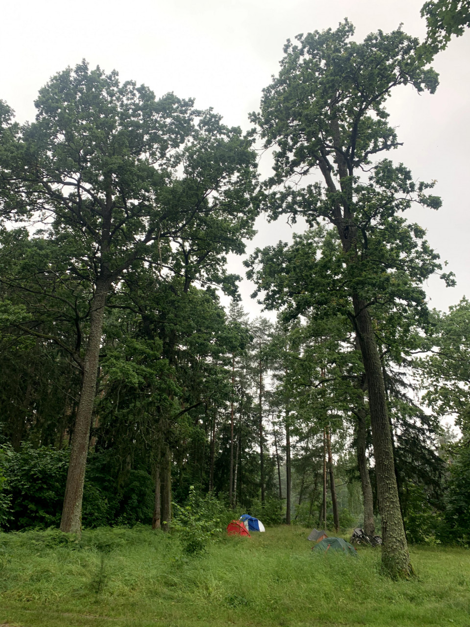 Пьяный Глаз хотел идти до Свислочи или Елизово. Основная часть спешила домой, основательно вымокла и была более чем пресыщена впечатлениями. Ругались в деревне Липень с Горбиковым. Они решили тягать имущество от берега до дороги. Глаз и команда рафта «Имени Мощного» прошла еще 800 метров до моста. Не ошиблись. Место для стапеля было весьма удобное. Мост скрывал от непогоды. Носить вещи было удобно и близко – только наверх. В дополнение под навесом моста и с видом на задумчивое течение реки был здесь вкопан стол со скамейками. К вечероу стало распогоживаться. В небе то там, то сям загорались радуги.