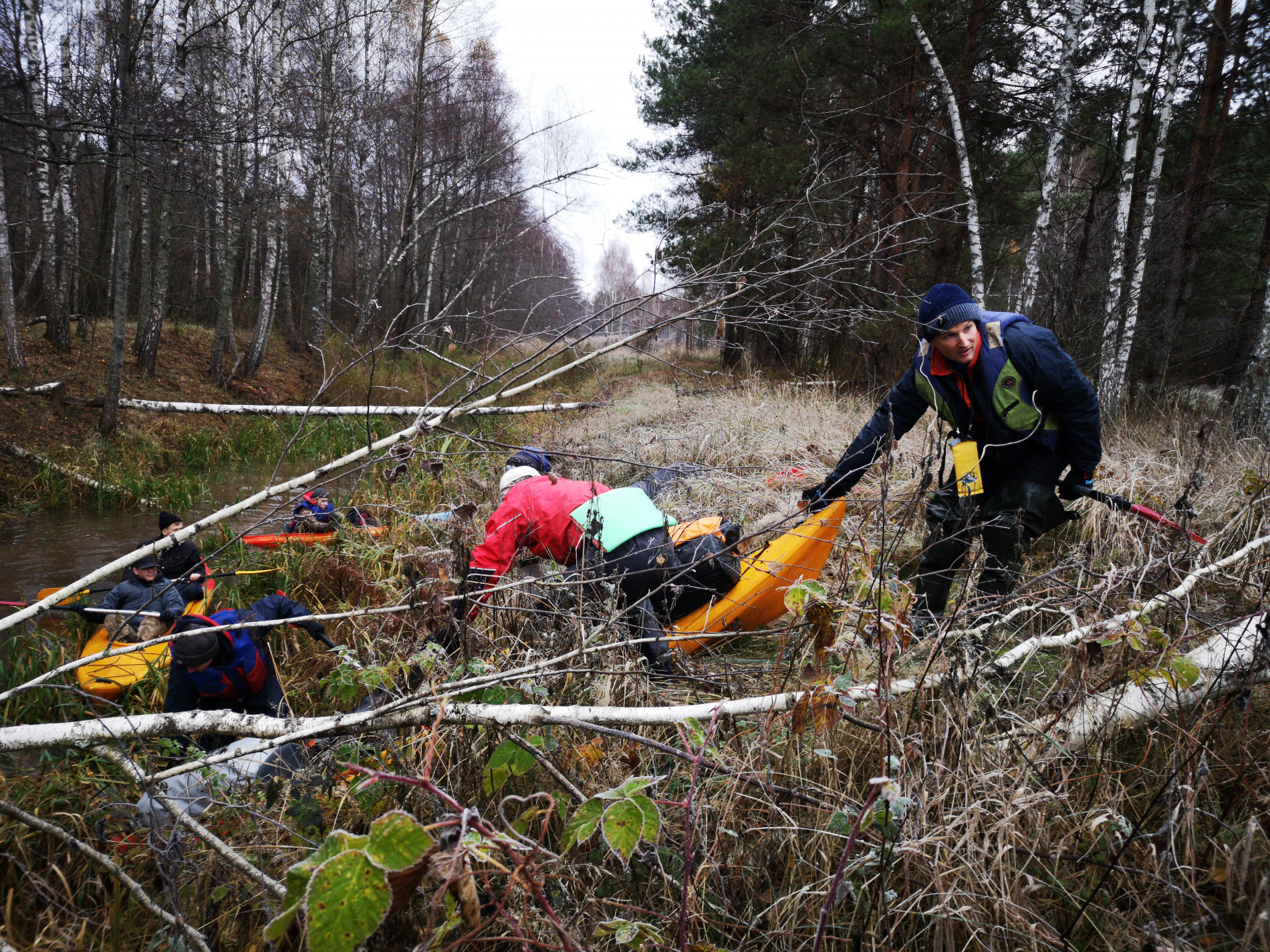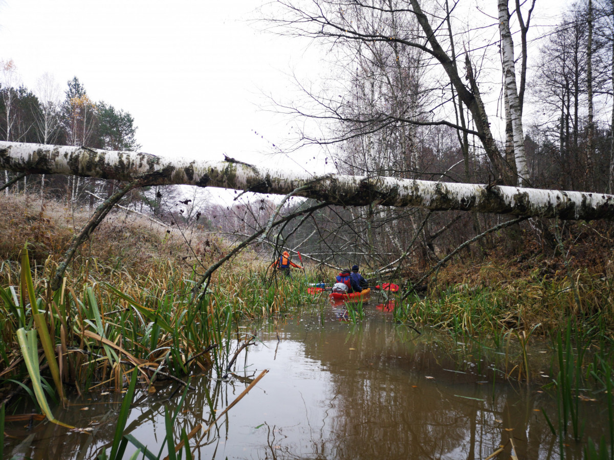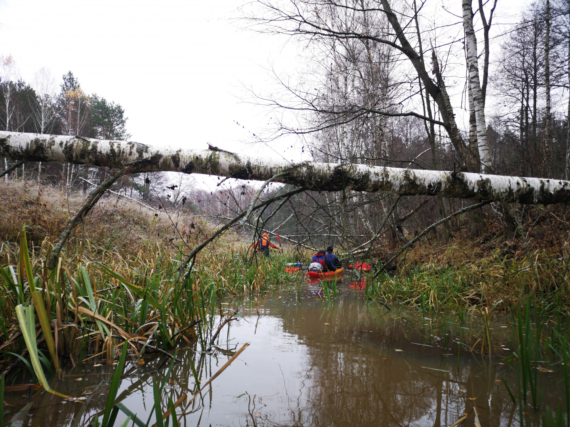 Канал дикий и крепко заросший. Давно его мелиораторы не обновляли. Много как отдельно упавших деревьев, так и завалов. 8 километров мы шли 4 часа.