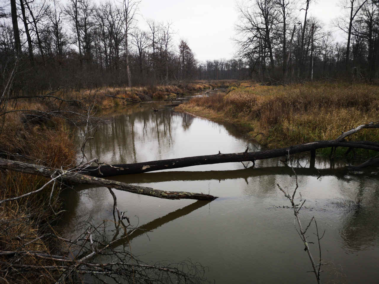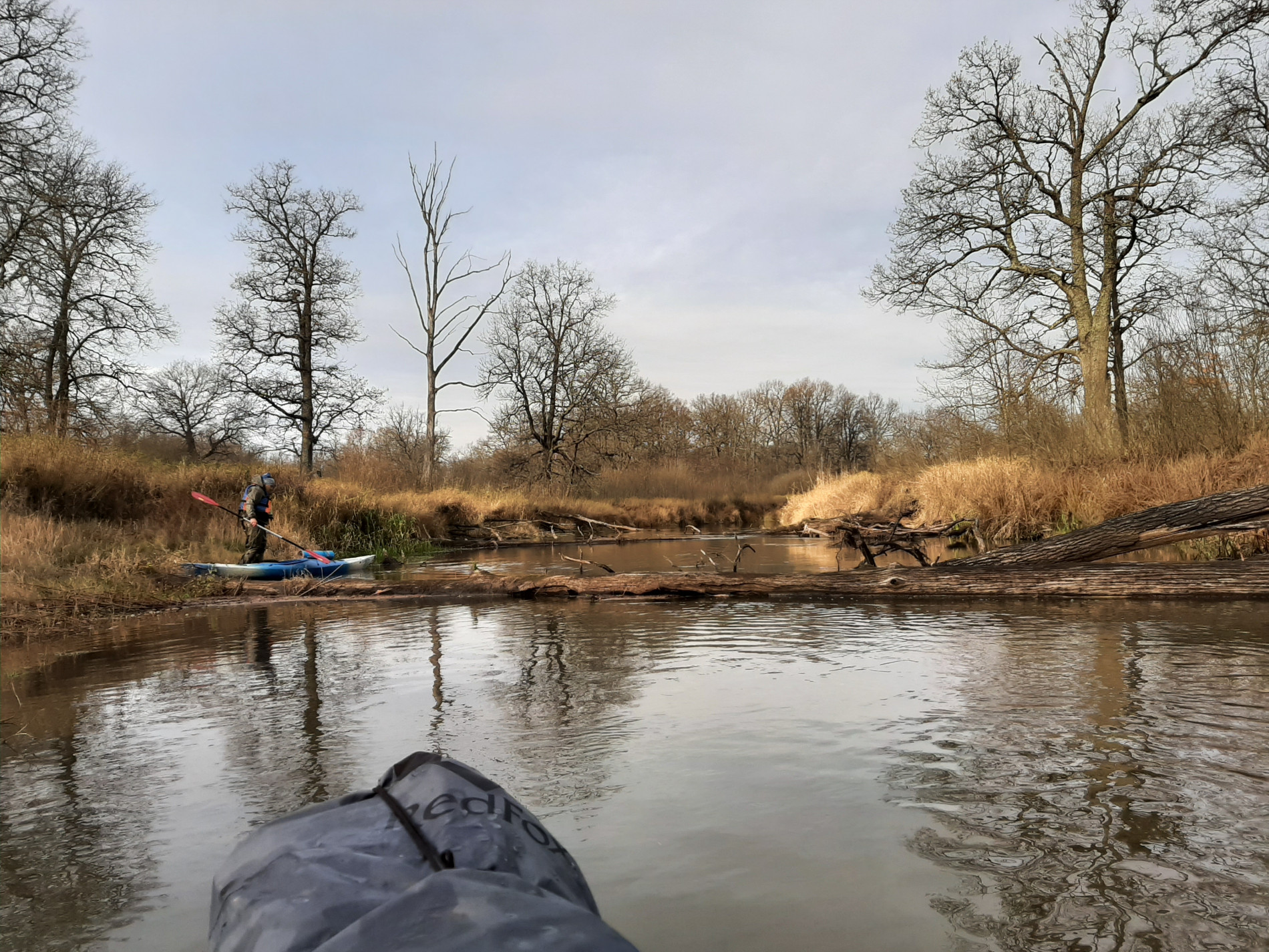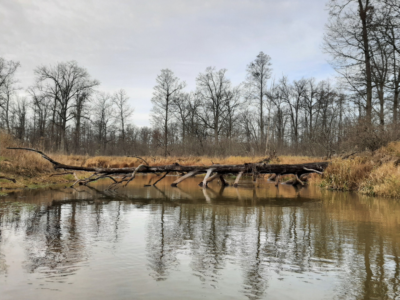 Канал дикий и крепко заросший. Давно его мелиораторы не обновляли. Много как отдельно упавших деревьев, так и завалов. 8 километров мы шли 4 часа.