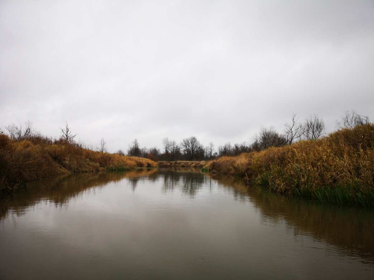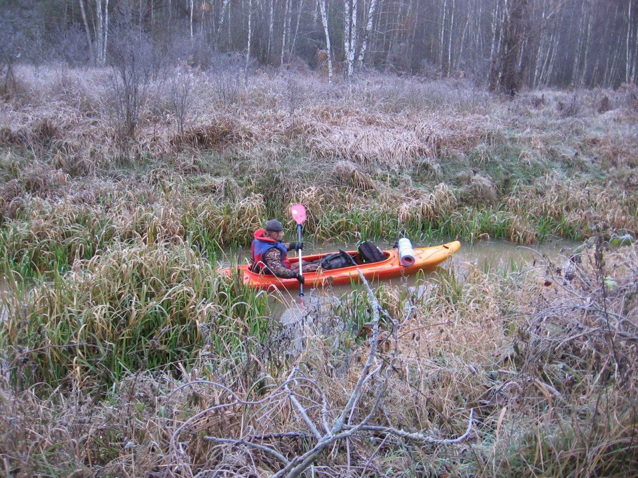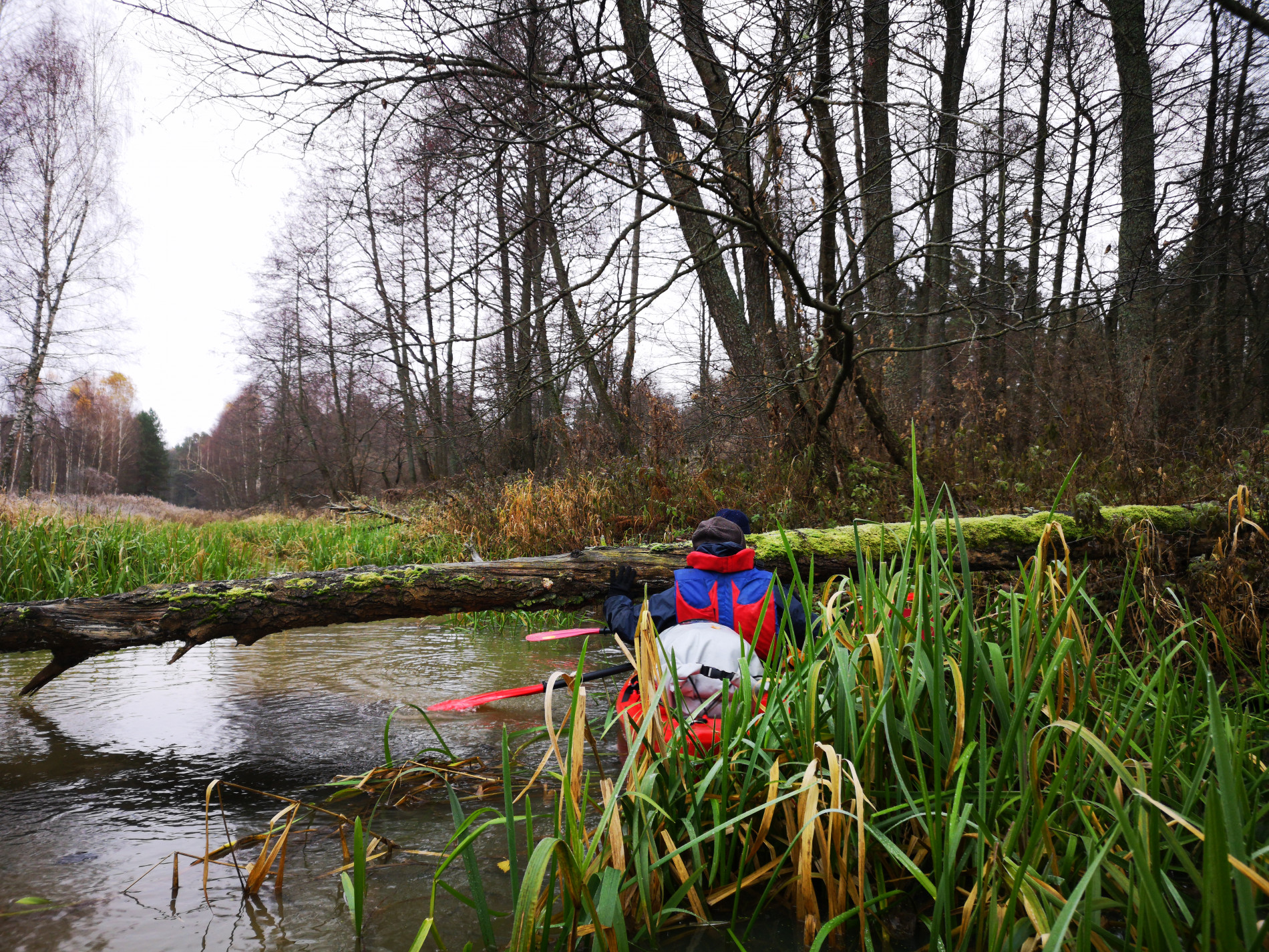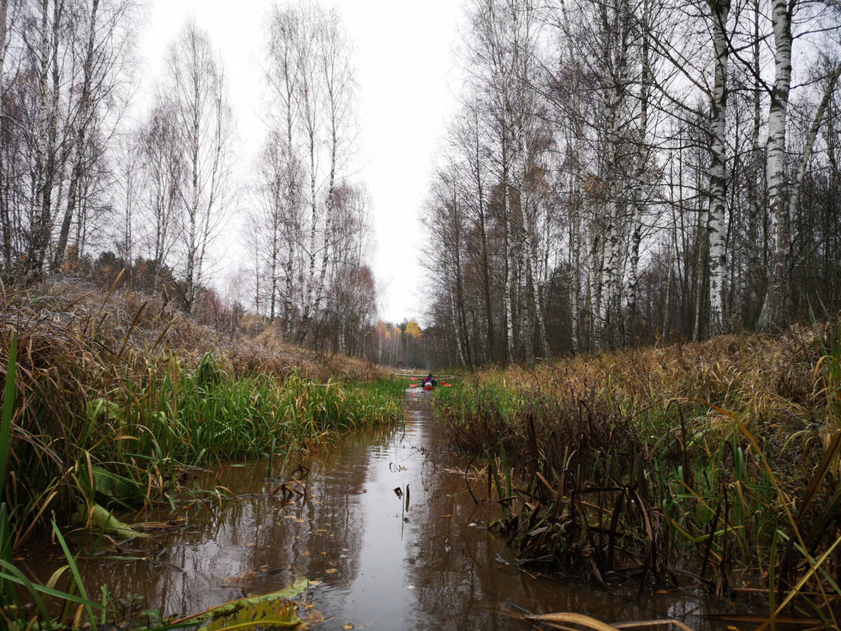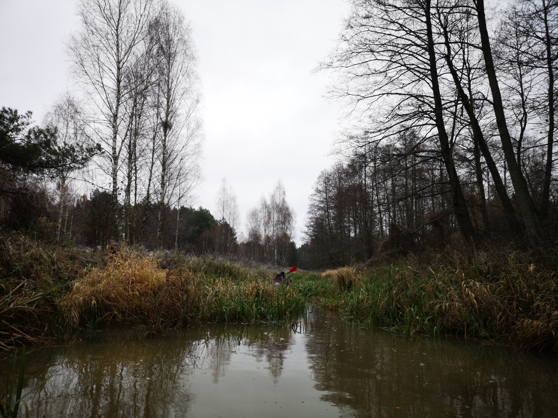 Хорошо ехалось по каналу, дружно и непринужденно. Он в непосредственной близости с погранполосой, но удивительным образом пограничников сегодня мы не интересовали. Снова и снова мы обносили завалы, или будь то проторивались сквозь засиливающий русло тростник. Как я уже сказал, прошло 4 часа. Сто пятьдесят метров прямого участка. Дальше расширение. Мы вошли в Словечну.